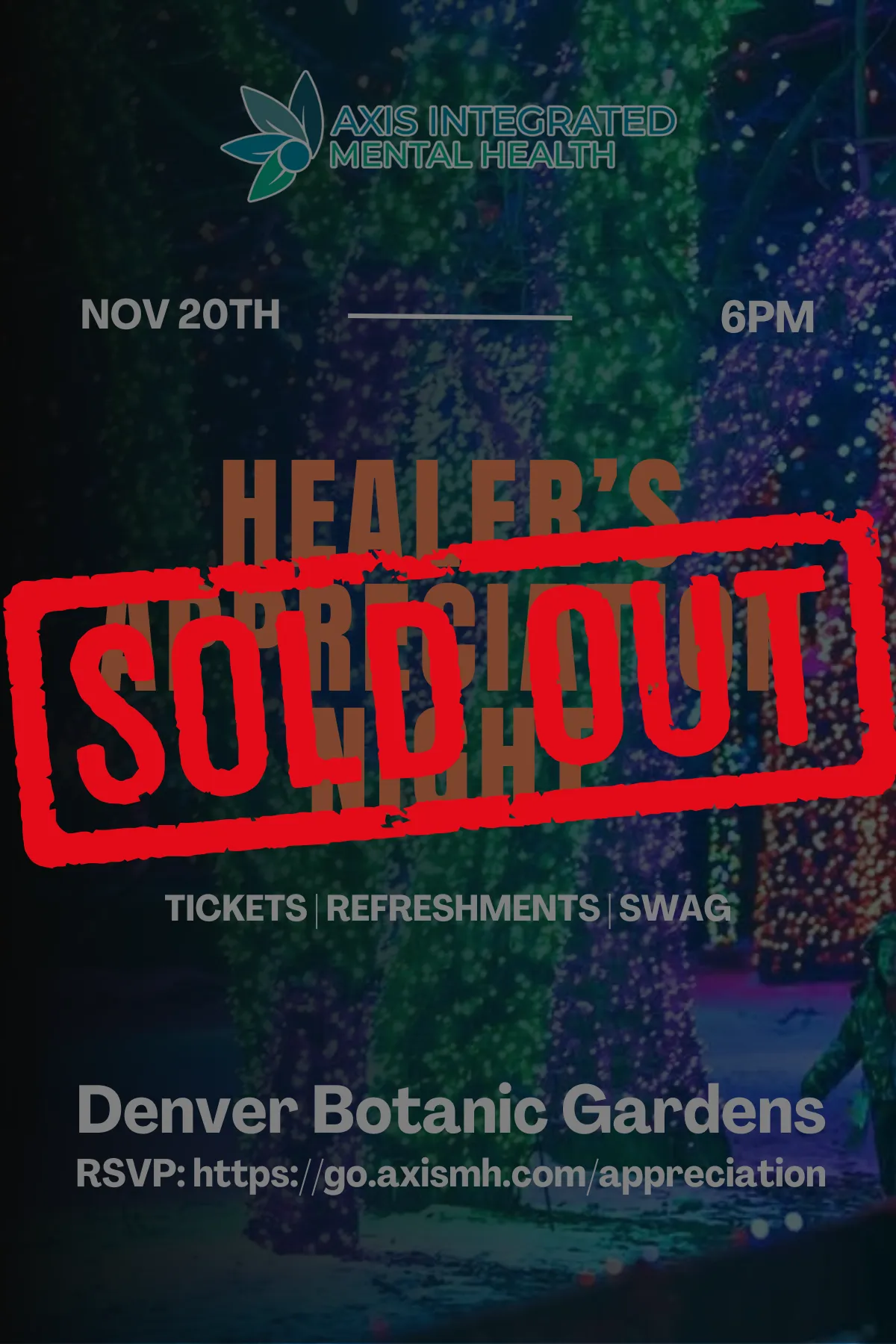 Join Axis Integrated Mental Health for our annual Mental Healthworker Appreciation Night at the Denver Botanic Gardens Blossoms of Light event. Every year, we give out free tickets to our Corporate Night (which is not open to the public) along with a delightful appreciation bag to celebrate the healing work that Colorado's therapists deliver to our community.